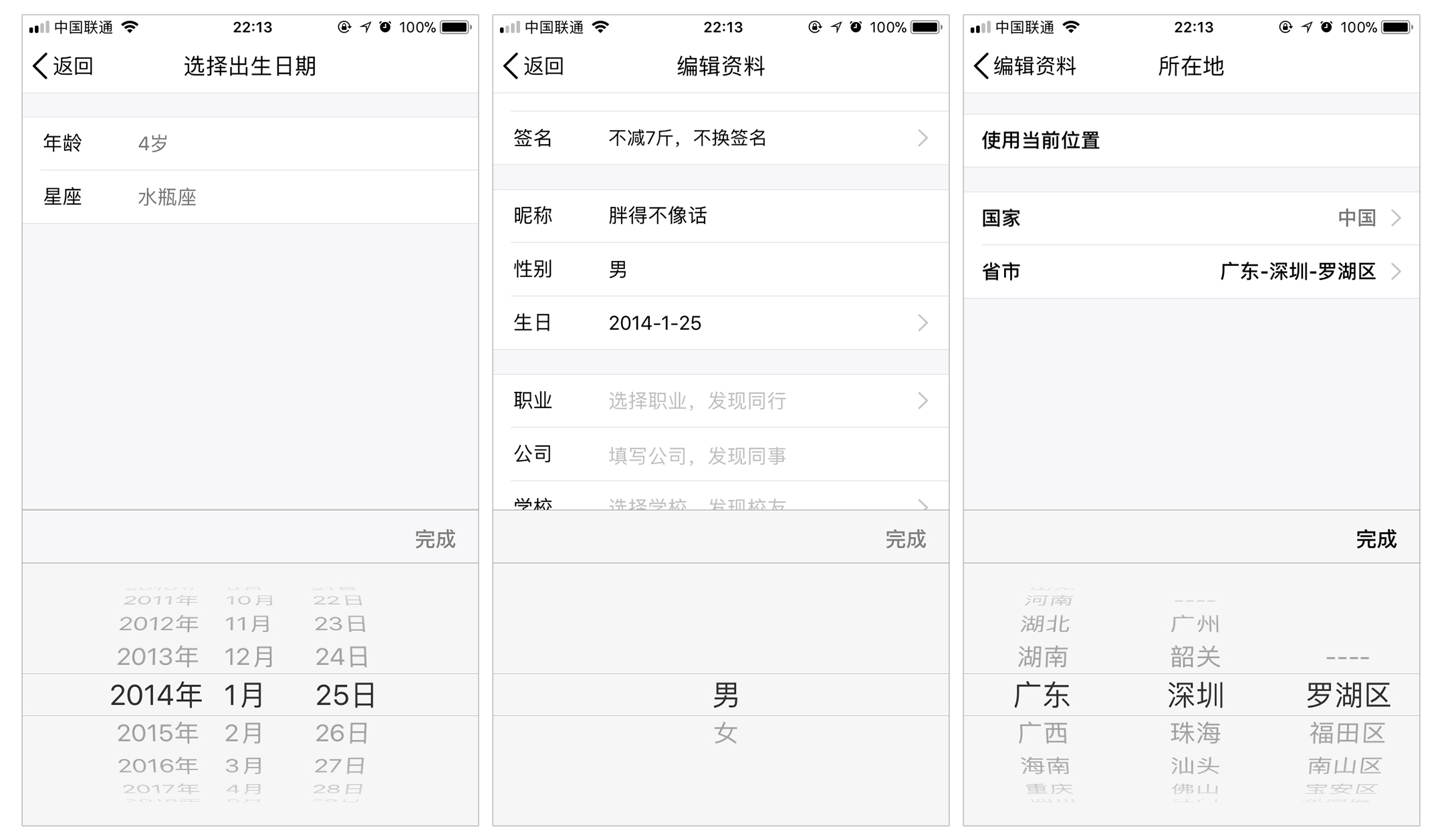 ? 性別、年齡、身高、所在地等為選擇輸入。常見的是在底部彈出選擇欄進入選擇;