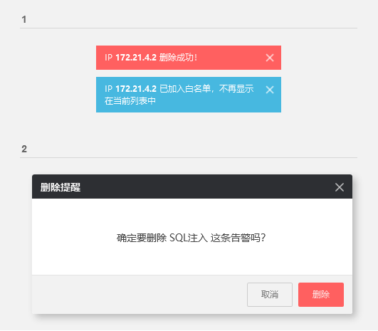 Q1:包括刪除、加入白名單這類操作,完成后數(shù)據(jù)將不再顯示在列表中,不知道數(shù)據(jù)是否成功了