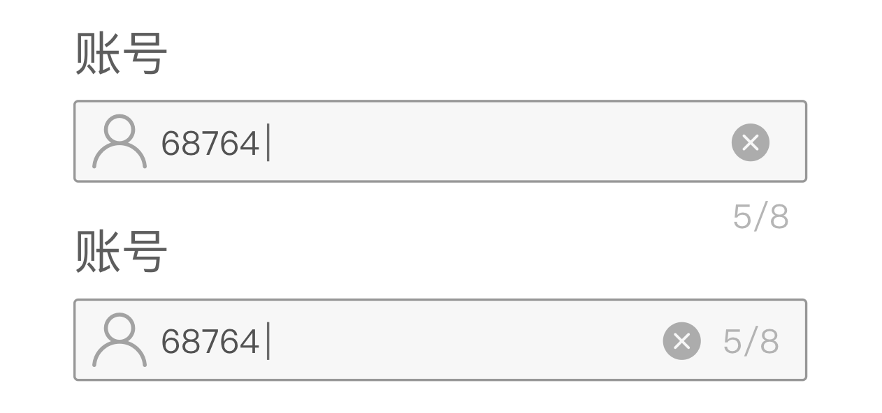 當(dāng)輸入的賬號(hào)的字符數(shù)需要在某個(gè)范圍內(nèi)的話,建議加上字符的提示,用戶可以清楚的知道自己輸入了多少個(gè)字符,還有多少可以輸入。