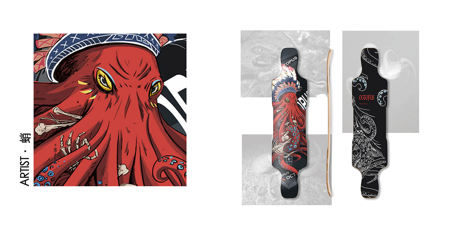融入了瞬長板的品牌特色。蛸以“ 章魚 ”為原型,純手繪設(shè)計。