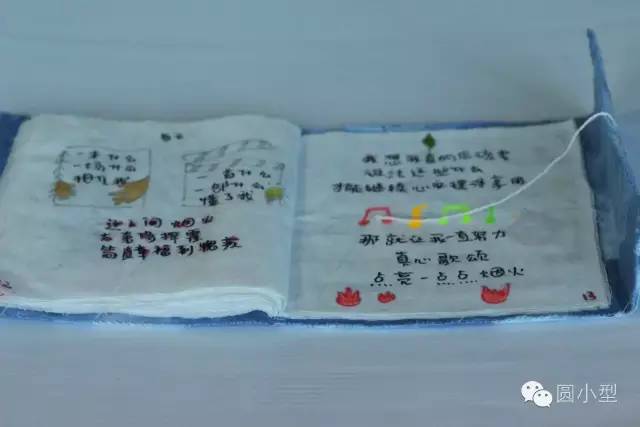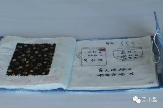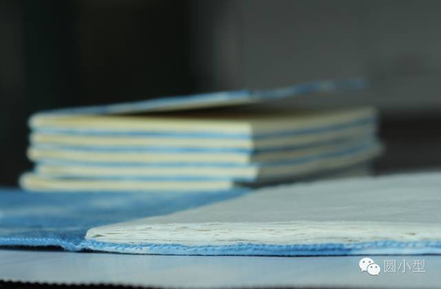 這次做的手工書主要材料是布料,剛好可以用到我扎染的藍布。封皮里墊了個瓦楞紙板,這樣能結(jié)實點(打開覺得扎染后的布還有點茉莉蜜茶的味道,估計是餓了)