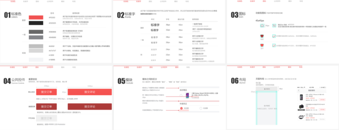 比如標(biāo)準(zhǔn)色、標(biāo)準(zhǔn)字、圖標(biāo)、布局等等這類大綱,幾乎囊括了一份設(shè)計(jì)規(guī)范文檔該有的所有內(nèi)容。
