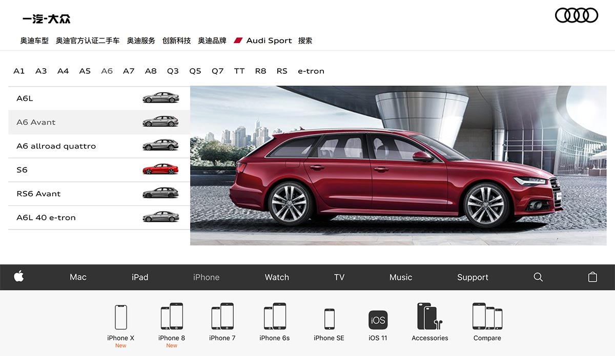 如果產(chǎn)品型號少,則可以參考蘋果國際品牌官網(wǎng)的做法,為Mac、iPad、iPhone、Watch、Music5條產(chǎn)品線的產(chǎn)品,分別設(shè)計產(chǎn)品類目頁。