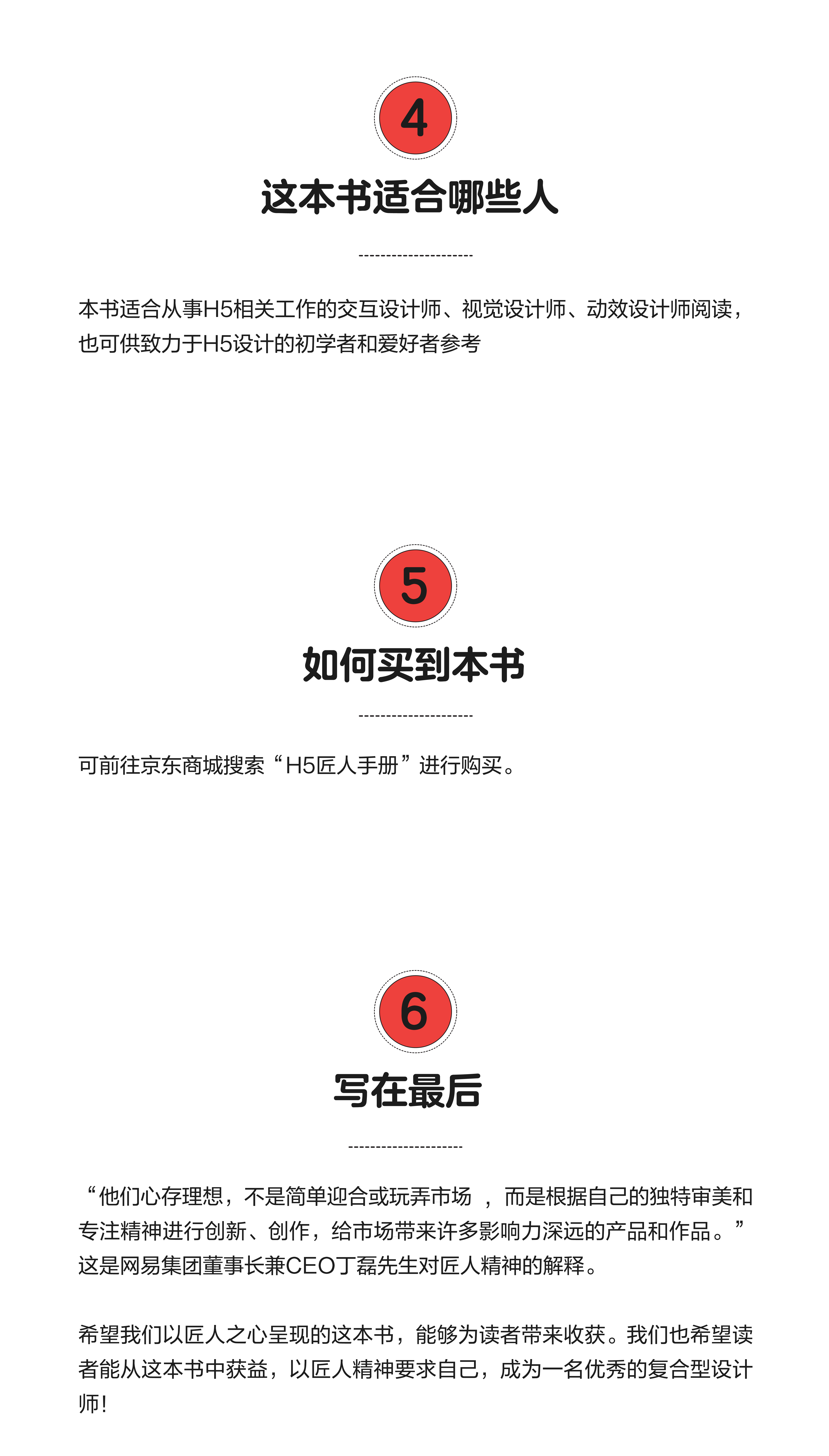 本書(shū)適合從事 H5 相關(guān)工作的交互設(shè)計(jì)師、視覺(jué)設(shè)計(jì)師、動(dòng)效設(shè)計(jì)師閱讀,也可供致力于 H5 設(shè)計(jì)的初學(xué)者和愛(ài)好者參考。