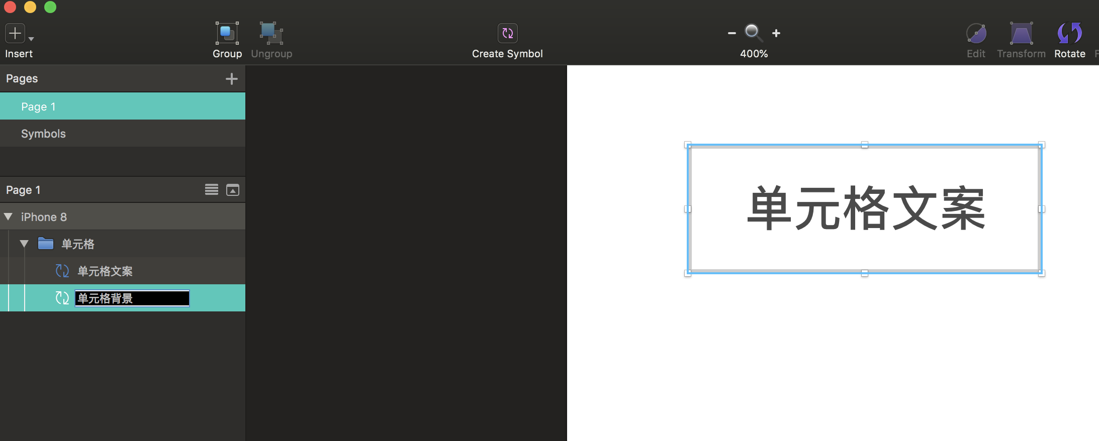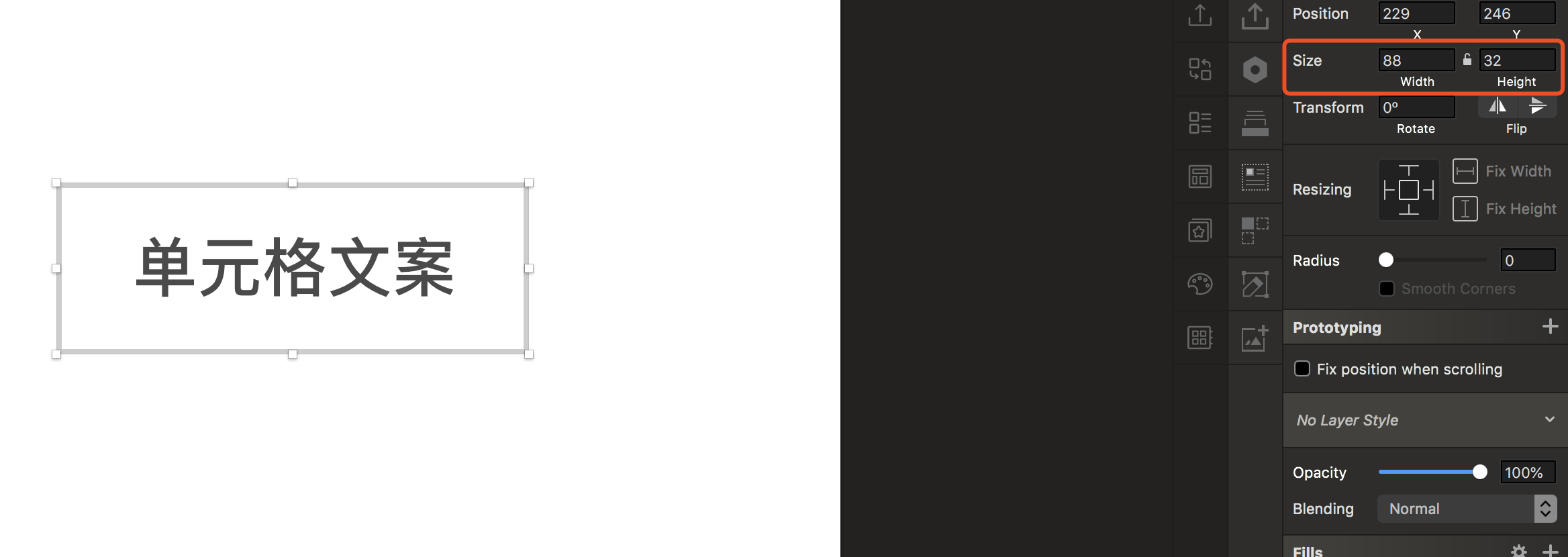 1 建立單元格,尺寸隨意,因?yàn)槲覀儠?huì)用到sketch的 Resizing功能,今后單元格尺寸都可以任意變化的。