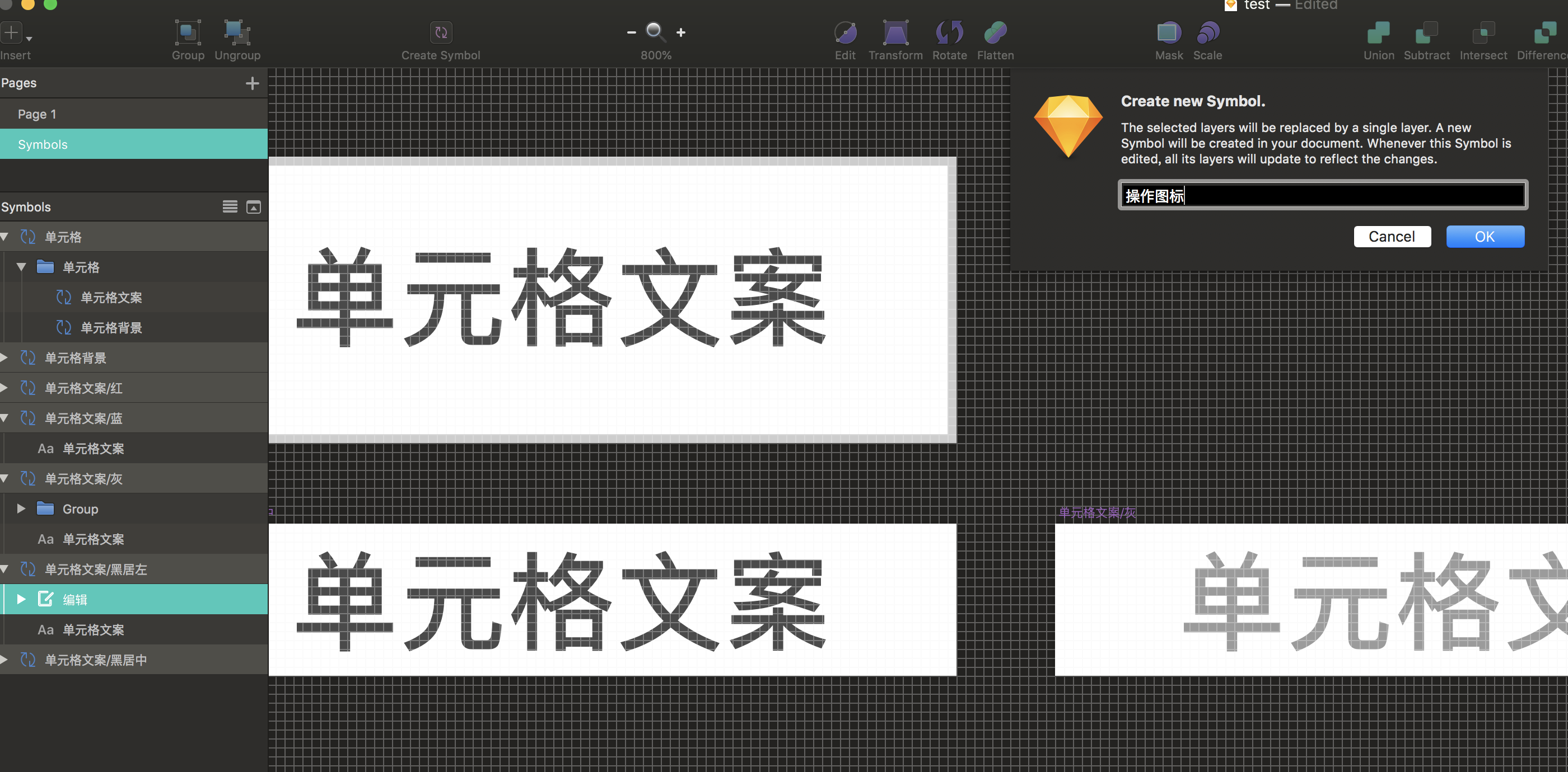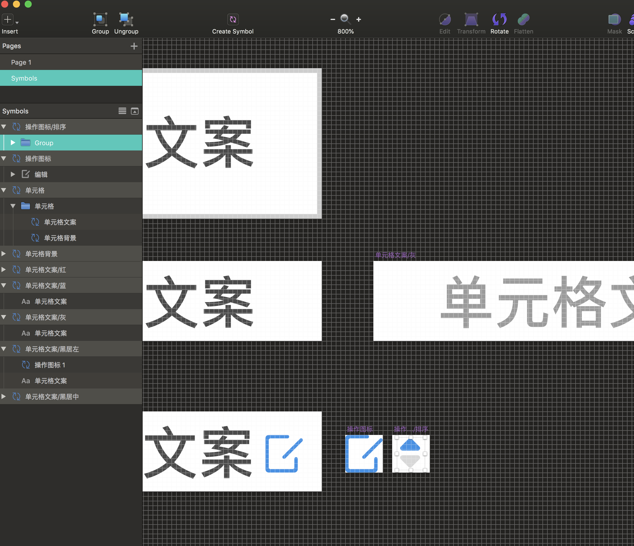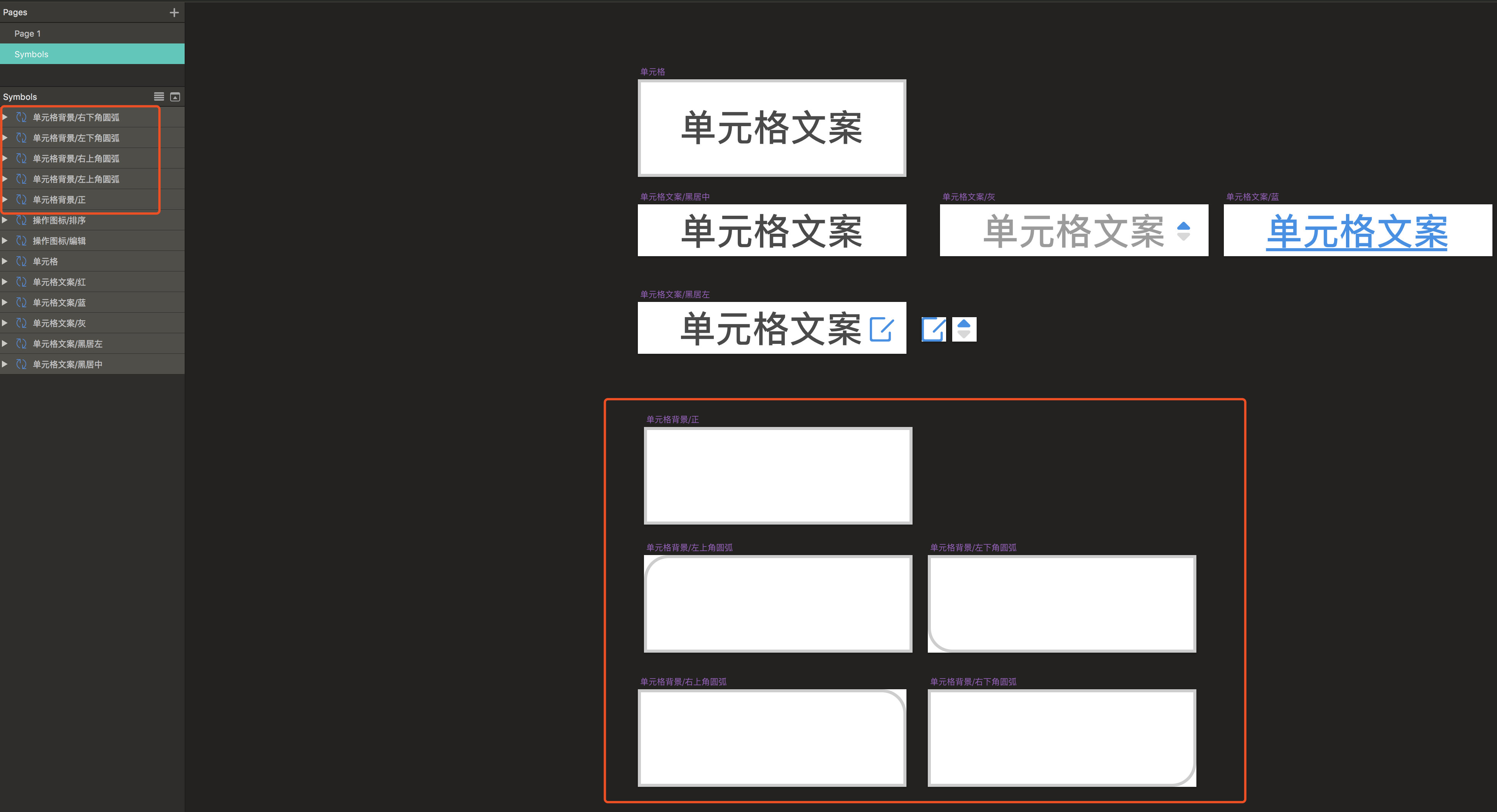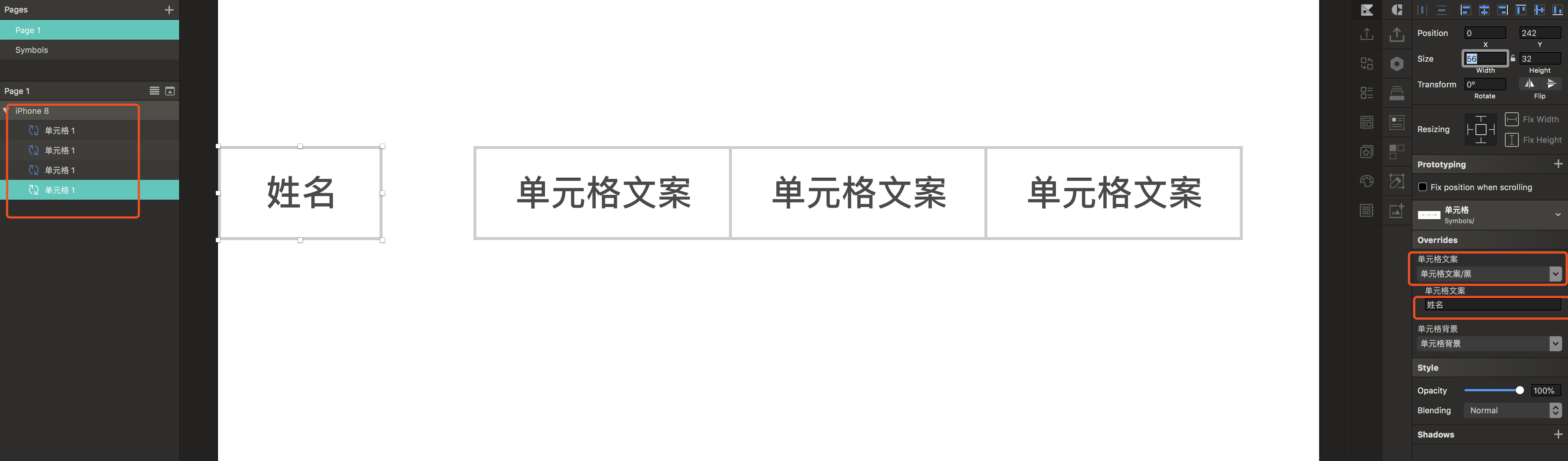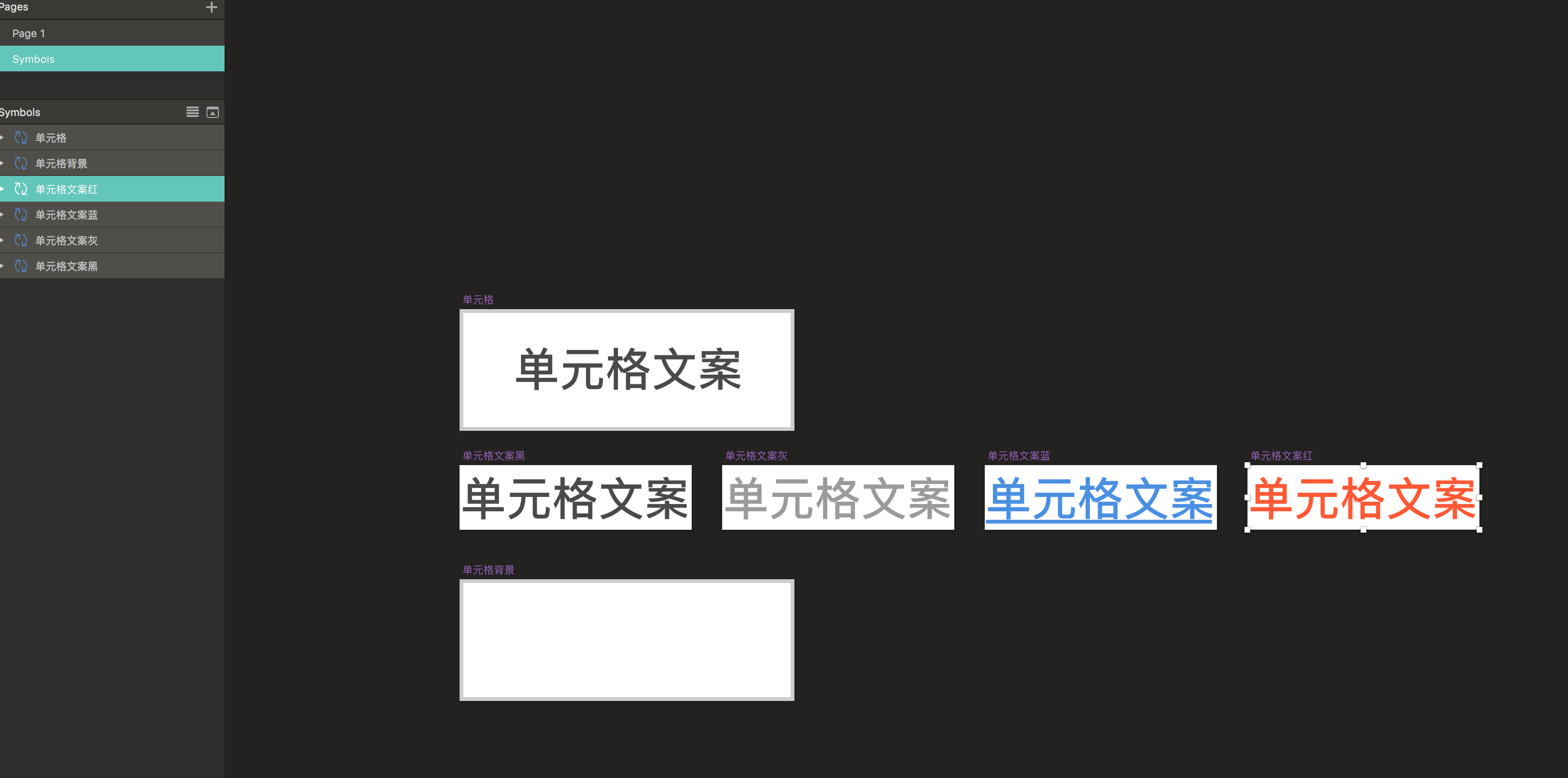4 回到Sym文檔中,可以看到 一個(gè)單元格是有三個(gè)嵌套關(guān)系組成,根據(jù)前面提到的,我們把單元格文案復(fù)制多個(gè)出來,各自設(shè)置各自的樣式,并命名區(qū)分。