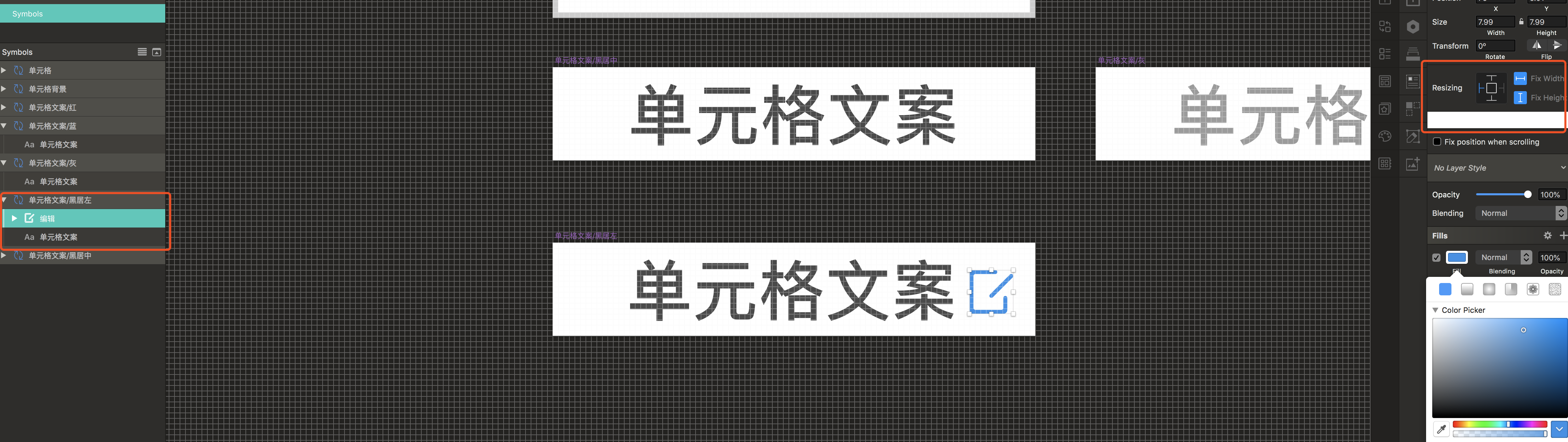 用sketch自帶的 組件嵌套,及Resizing功能,制作出來的表格 比起 Kitchen 來說,更加靈活,方便修改文案,方便做各種樣式,方便各種布局。