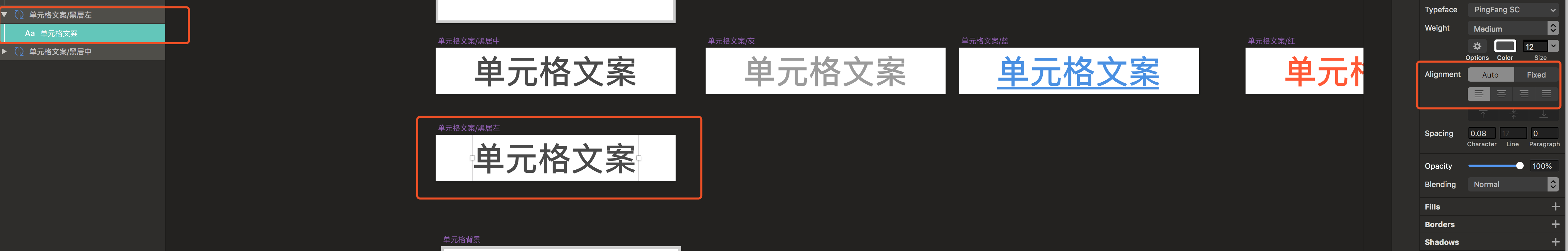 為了方便管理,我們從“單元格文案/黑”  復(fù)制一個(gè)出來,將其文案對(duì)齊方式設(shè)置為左對(duì)齊。
