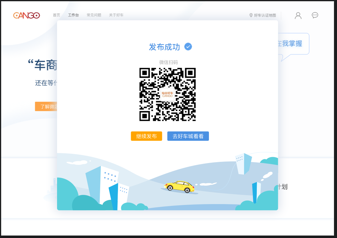 • 原頭部banner處展示用戶身份名片,與小程序連接,微信掃描二維碼可以在公眾號里查看平臺內(nèi)車源信息。