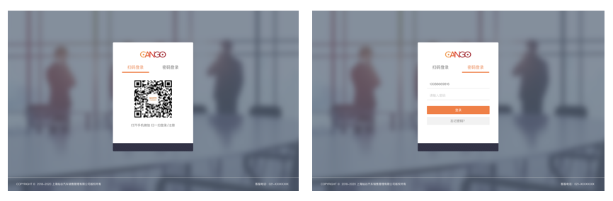 • 登陸頁選用“商務場景”作為沉浸式背景圖,突出產(chǎn)品功能TO B屬性;而用戶進入這個網(wǎng)頁是有特定目的的——管理后臺,所以我們不需要炫酷的界面樣式,這不是使用者的訴求。