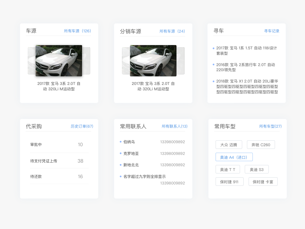 • “尋車” 功能是方便各商家在平臺上發(fā)起資源共享,文字展示車型更容易減少用戶學習時間,一眼看出重點;