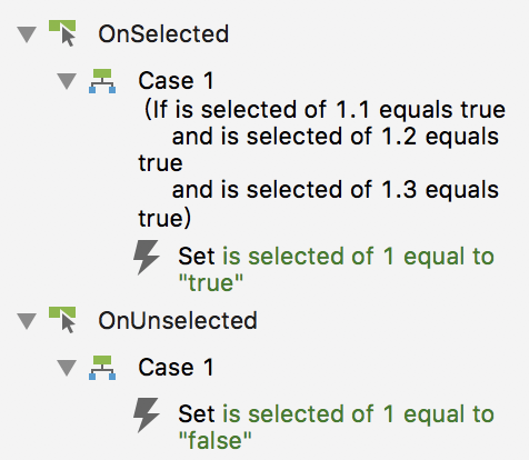 當(dāng)選擇1.1時(shí),如果1.1、1.2、1.3都選上時(shí),設(shè)置1的選擇狀態(tài)為勾選;