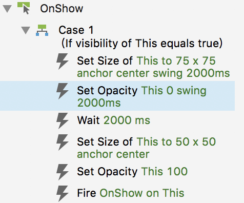 步驟四:設(shè)置圈1效果,當小圈1顯示時,設(shè)置大小從50、50到75、75,補間效果時長2000ms波動曲線;透明度從100到0,補間效果時長2000ms波動曲線;等待2000ms;設(shè)置大小為50、50;設(shè)置透明度為100;循環(huán)觸發(fā)此效果;具體參數(shù)設(shè)置如圖