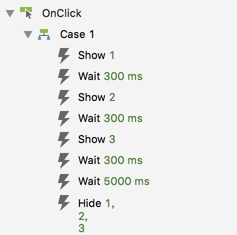 步驟三:設(shè)置機器人效果,點擊機器人顯示小圈1,等待300ms,顯示小圈2,等待300ms,顯示小圈3,等待5000ms,隱藏小圈123;具體參數(shù)設(shè)置如圖