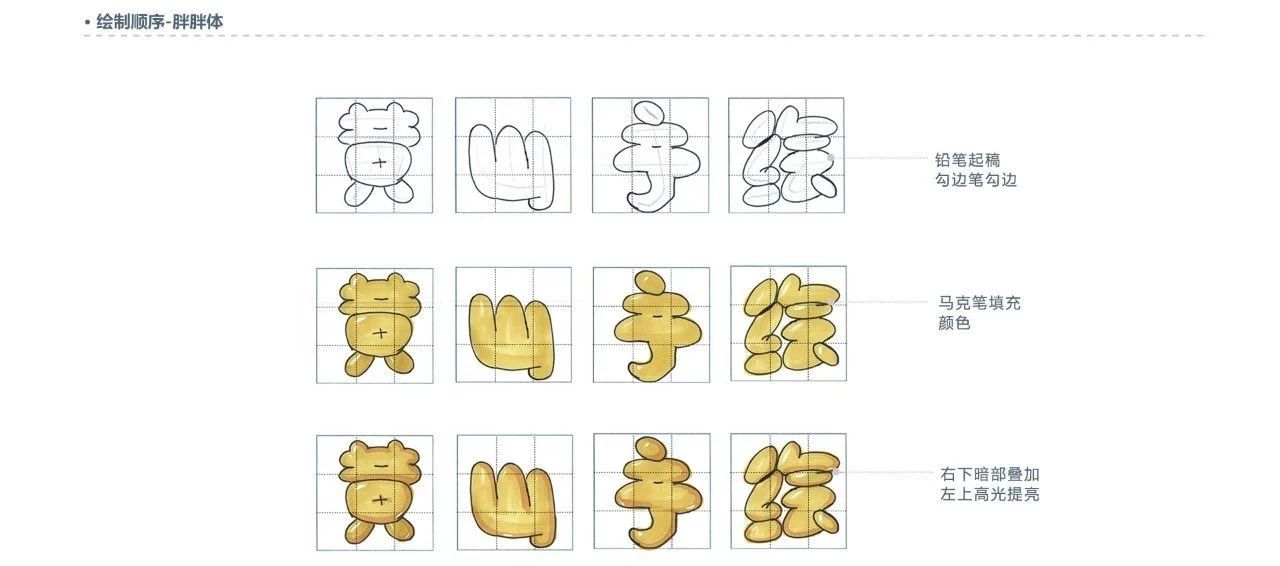字體飽滿圓潤,外輪褲線柔和,留出高光與反光。