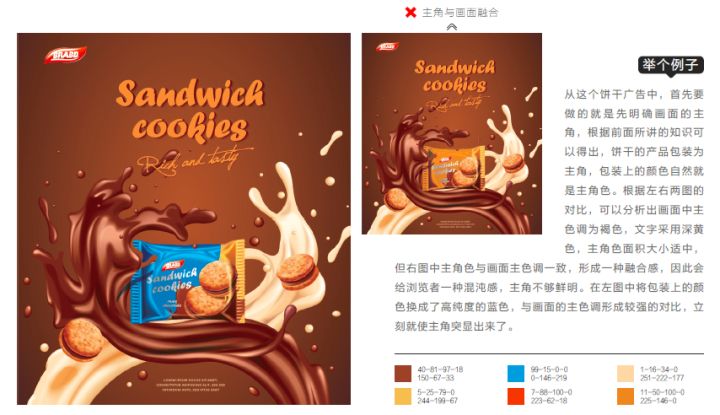 在區(qū)分主角色之前我們首先應(yīng)該明確畫面中的主角是什么?它可能是一個人物形象,也可能是一段文字,或者是一個標(biāo)志……確定了主角之后,理所當(dāng)然的,主角上的顏色就是主角色。
