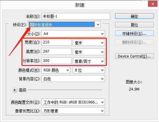 2. 執(zhí)行“文件”—“新建命令,輸入相應(yīng)的數(shù)值,新建畫布。