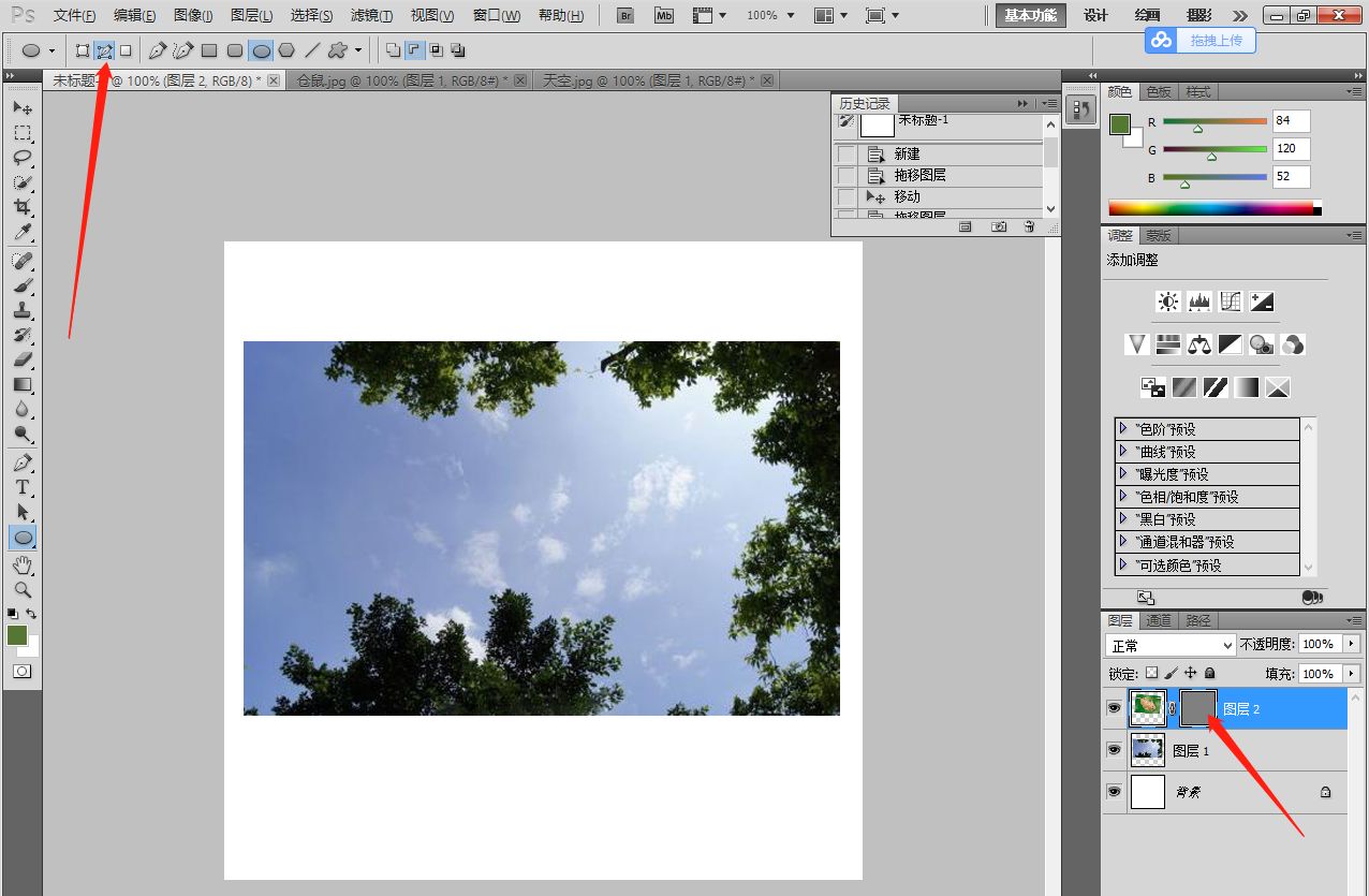 7. 在畫布上畫一個(gè)橢圓形,選中的區(qū)域會(huì)出現(xiàn)下方所隱藏圖層上的圖片。