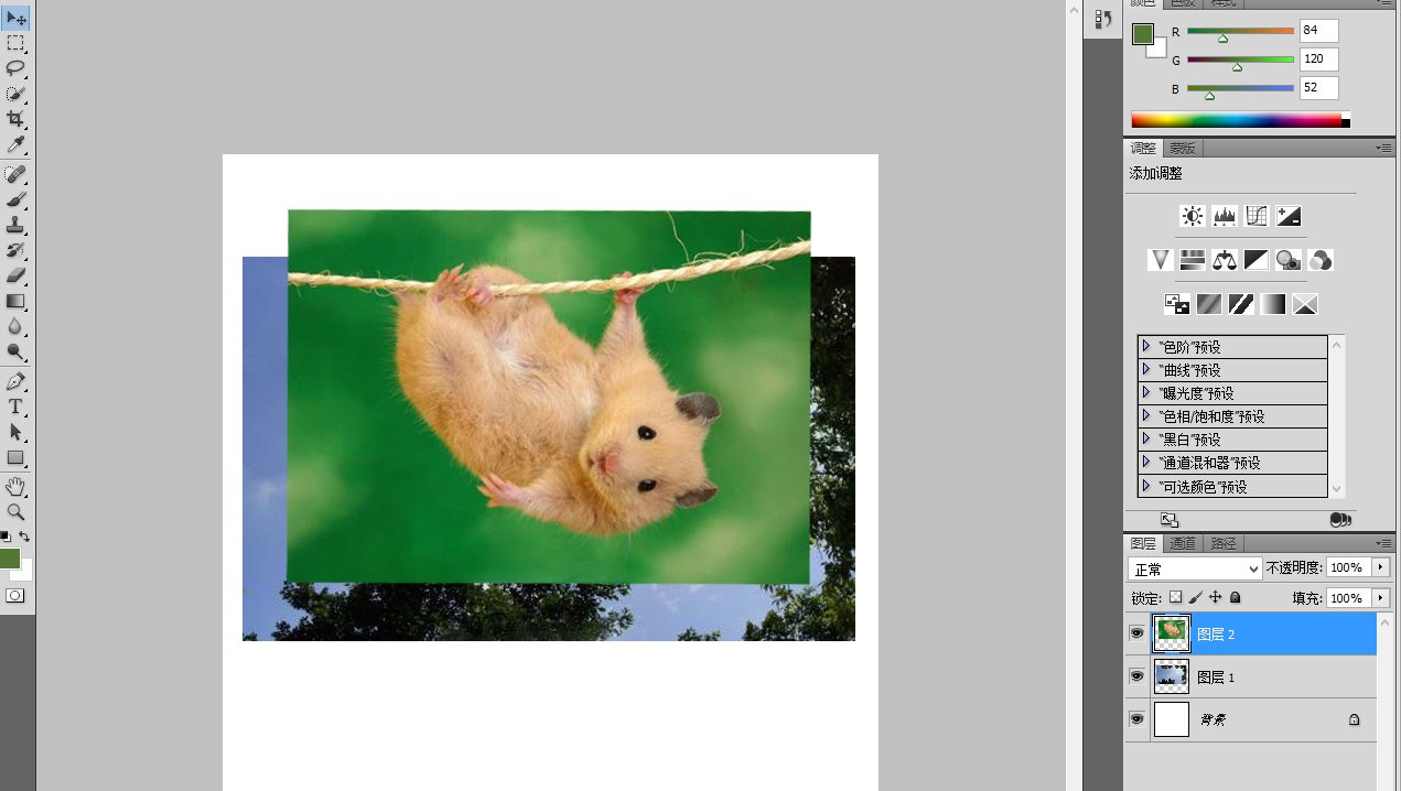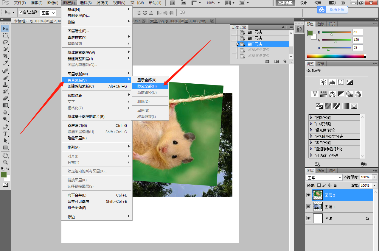 5. 如圖所示,小倉鼠的圖片現(xiàn)在是看不見的。而該圖層上出現(xiàn)矢量蒙版是灰色的。(圖層蒙版是黑白場)
