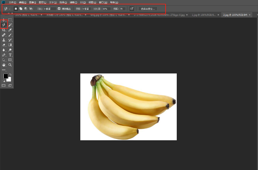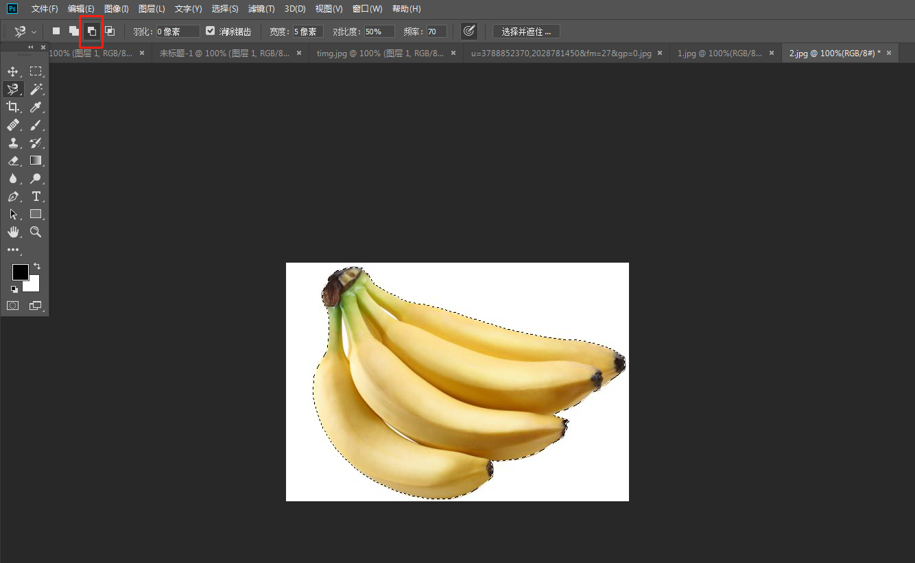 4.可以看出香蕉內(nèi)部還有白色的背景,我們可以選擇“從選區(qū)減去”,減去白色背景