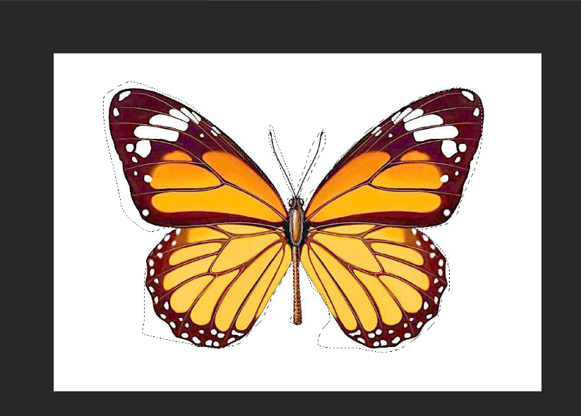 2. 選擇“磁性套索工具”沿著蝴蝶的外部輪廓,開始描,按住鼠標(biāo)左鍵(不能松手)沿著主體邊緣拖動(dòng),就會(huì)生成沒有錨點(diǎn)(又稱緊固點(diǎn))的線條。只有線條閉合后才能松開左鍵,否則首尾會(huì)自動(dòng)閉合。