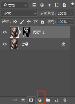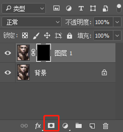 4.按住ALT點擊蒙版按鈕給圖層1添加一個圖層蒙版