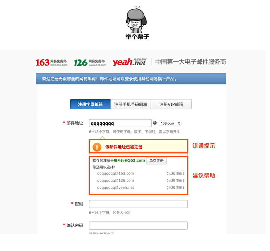 比一個優(yōu)秀錯誤提醒彈窗更好的設計方式,是在這個錯誤發(fā)生之前就避免它??梢詭椭脩襞懦恍┤菀壮鲥e的情況,或在用戶提交之前給他一個確認的選項。在此,特別要注意在用戶操作具有毀滅性效果的功能時要有提示,防止用戶犯不可挽回的錯誤