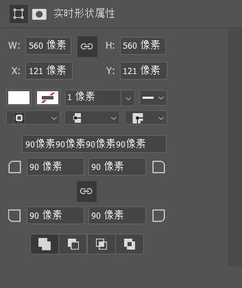 新建一個圖層畫出560*560的圓角矩形(顏色為純白色),圓角為90!參數如下