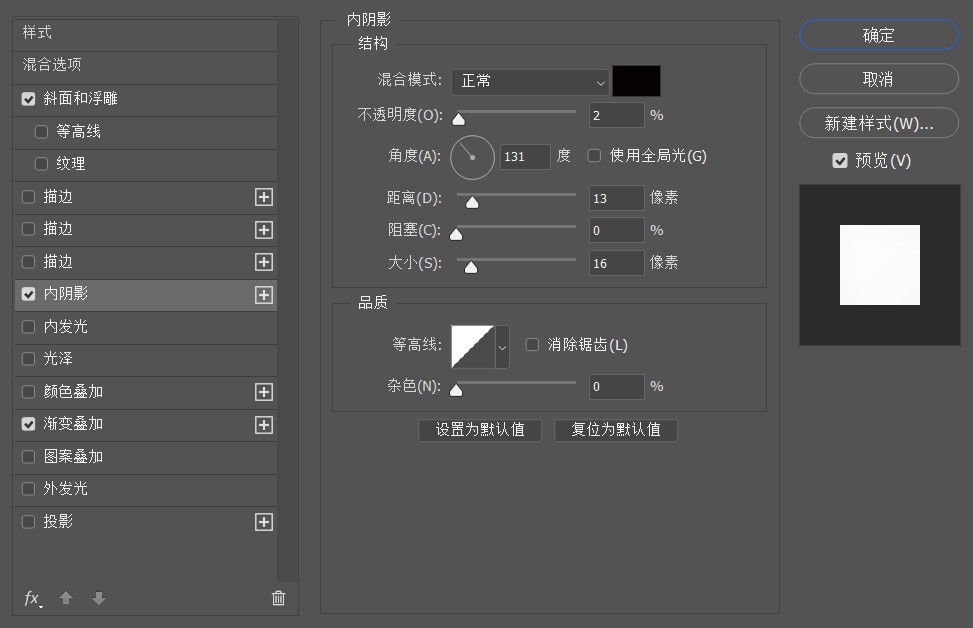 3.畫出時鐘的內表盤,新建一個318*318的正圓并調整它的斜面浮雕參數、內陰影參數以及漸變疊加參數,如圖: