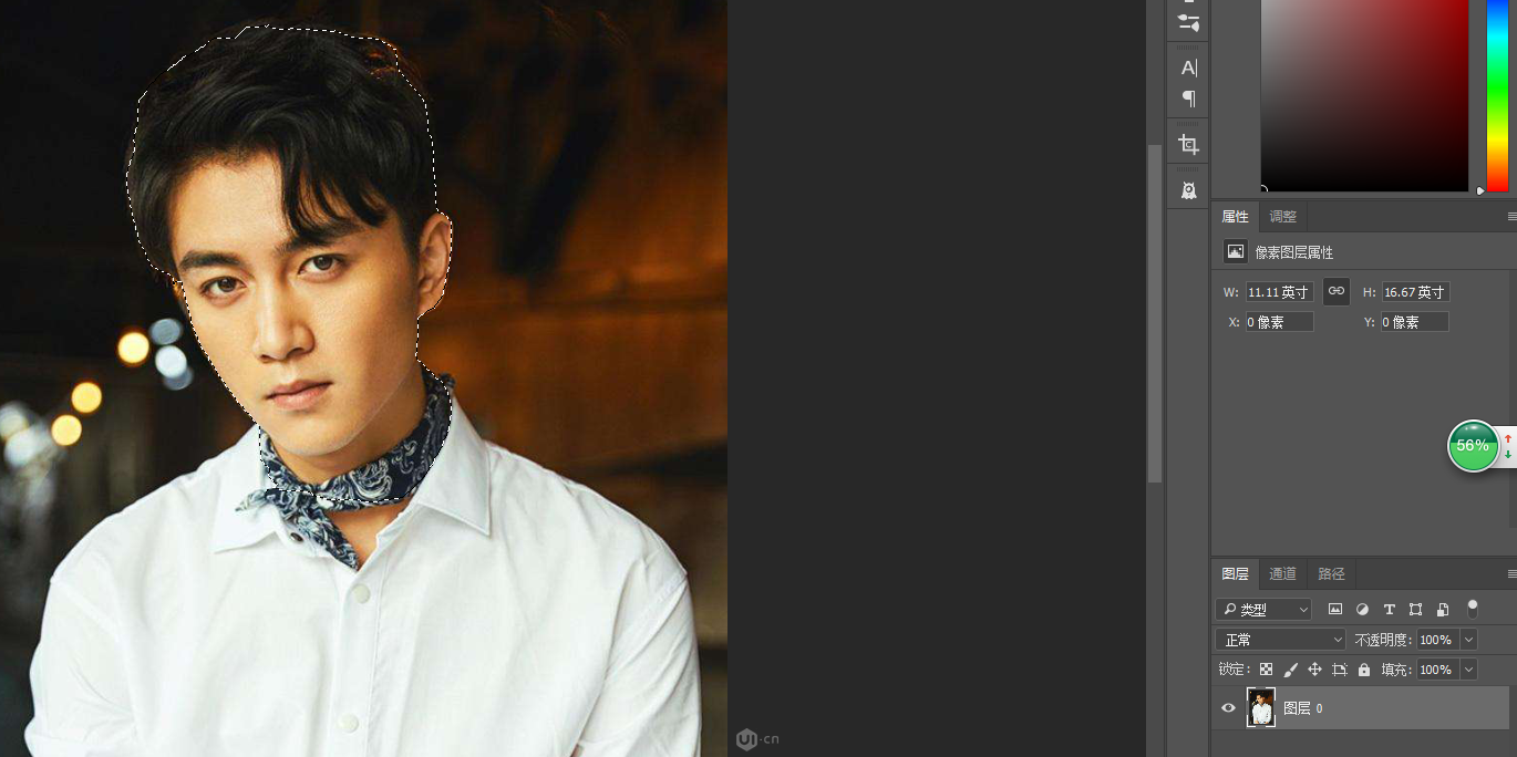 1.選一張你認(rèn)為最美/帥的照片,這里我用一張陳曉的帥照,用套索工具把頭部套出來(lái),復(fù)制一個(gè)圖層出來(lái);
