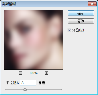 3. 執(zhí)行濾鏡 - 模糊 - 高斯模糊 - 半徑值為8。