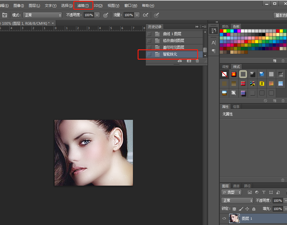 7. Ctrl+Alt+Shift+E蓋印可見圖層,執(zhí)行 - 濾鏡 - 銳化 - 智能銳化。