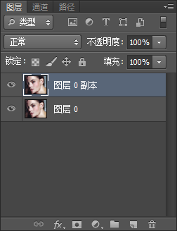 2. 復制當前背景圖層得到一個圖層0副本。