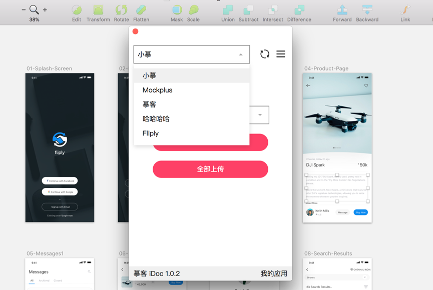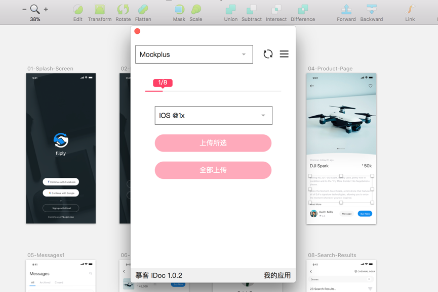 點(diǎn)擊上傳所選或全部上傳便會(huì)將設(shè)計(jì)稿資源一鍵上傳至iDoc,設(shè)計(jì)師和開(kāi)發(fā)便可登錄摹客iDoc查看標(biāo)注與下載切圖等。