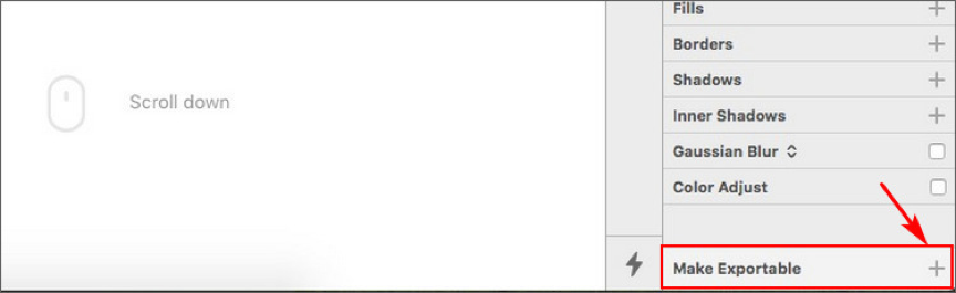 Sketch插件中選中需要切圖的圖層或編組,點(diǎn)擊Sketch 右下角的Make Exportable右側(cè)的加號(hào)便可完成切圖標(biāo)記,無(wú)需再設(shè)置多種切圖倍率,iDoc將自動(dòng)生成不同倍率的切圖。