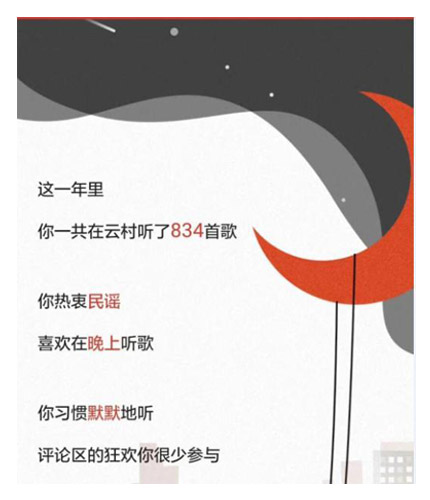 還有網(wǎng)易云音樂的年度歌單,貼心地分析出了我們一年的聽歌歷程,滿滿的關懷,滿滿的詩跟遠方,仿佛一年的辛苦和奔波都得到了慰藉與關懷,重要的是還可以通過分享表現(xiàn)自己的不一樣,獲得優(yōu)越感~嗯,現(xiàn)在仿佛可以理解網(wǎng)友站在微博熱搜呼喚年度“賬單”的心情了呢。