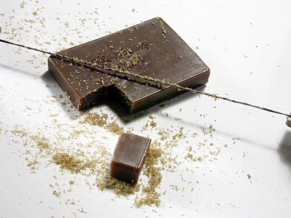 用鋸弓切下所需的蠟塊大小
