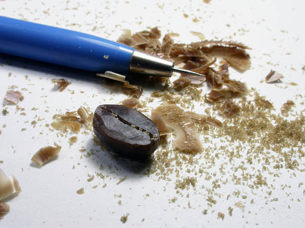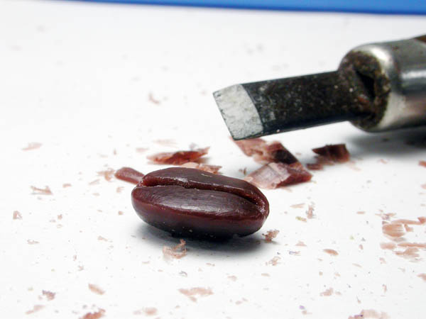 用雕刻刀大致定出咖啡豆的長(zhǎng)寬厚度,