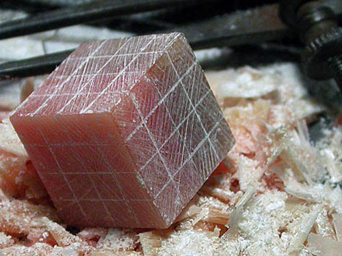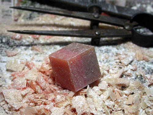 兩個(gè)方塊熔接焊合起來(lái),銼修整理成等邊立方體。