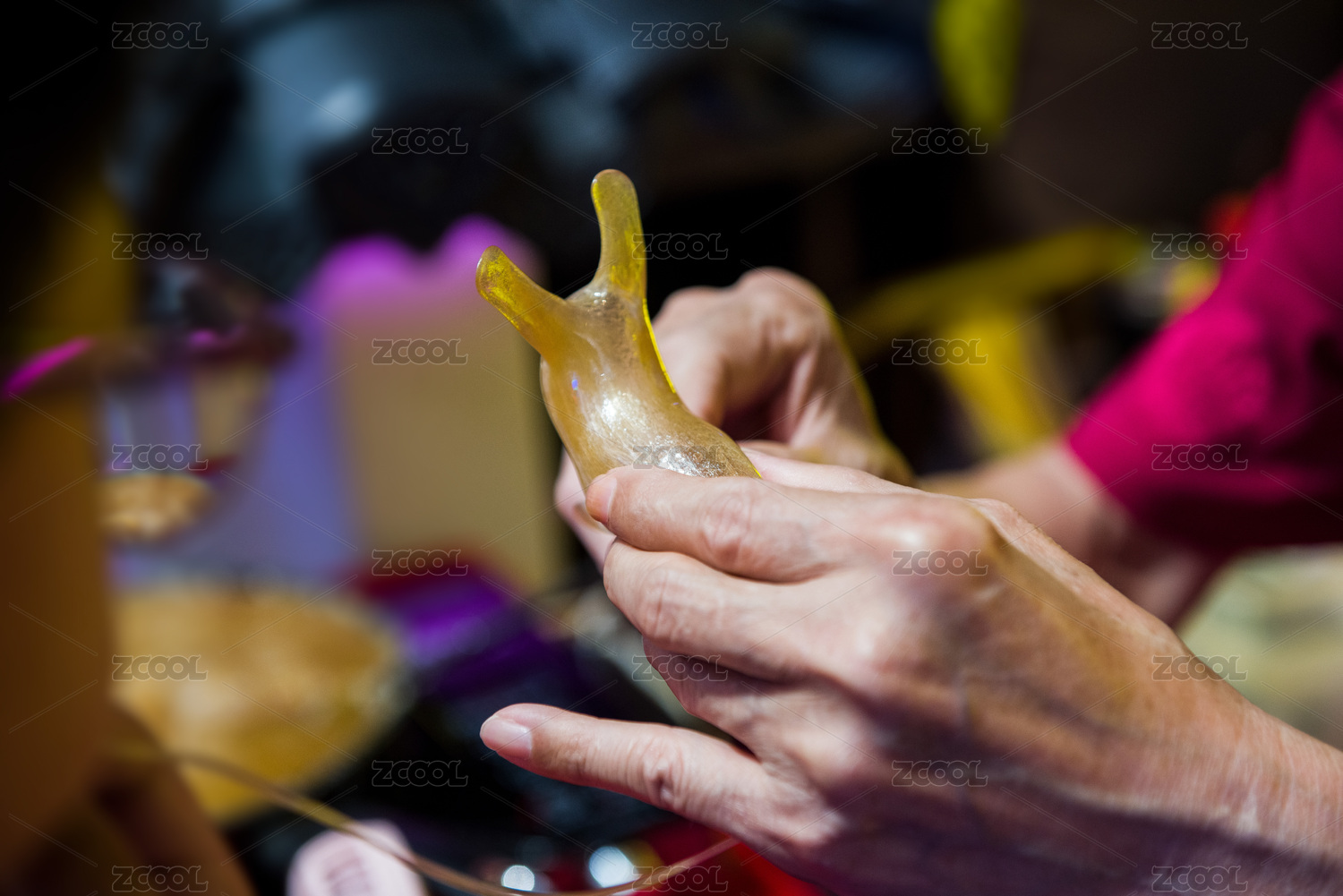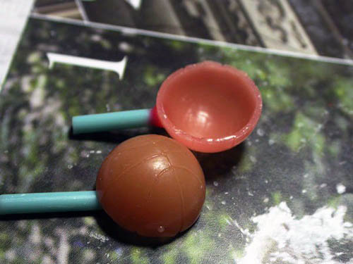 小心的畫(huà)上花紋線條,分開(kāi)兩色蠟塊成兩個(gè)半圓,