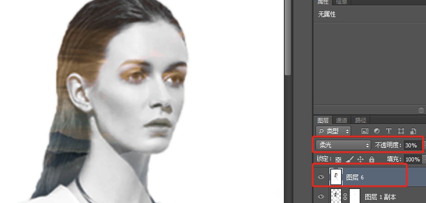 23.  選中頂層圖層,然后按住“Ctrl+Alt+Shift+E”將所有圖層合并,系統(tǒng)自動新建一個圖層,修改該圖層混合模式為“柔光”模式,將不透明度更改為30%。