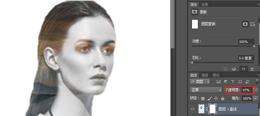 20.  設(shè)置該圖層的不透明度根據(jù)效果自定,這里改為47%。