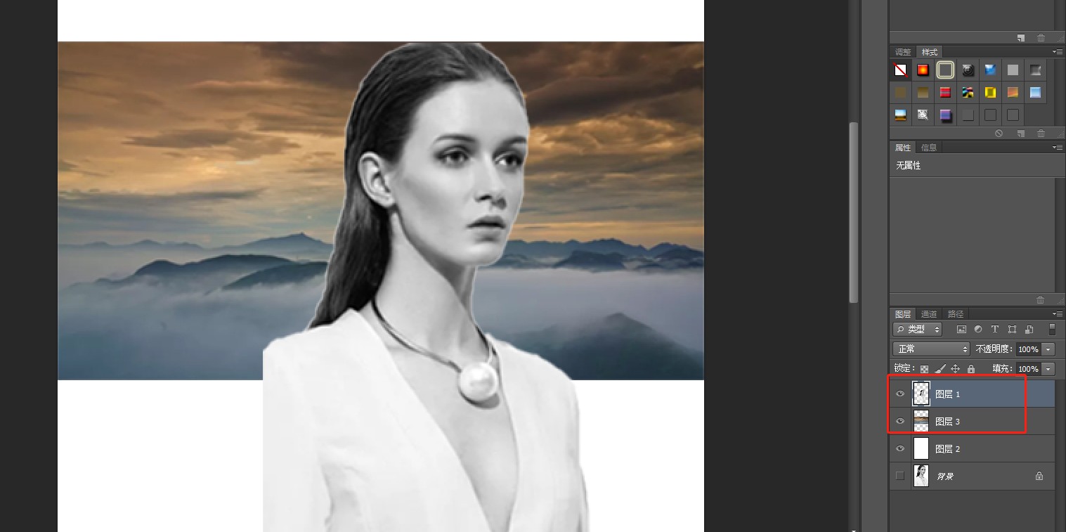7.     將新建的圖層與人物圖層進行調(diào)整。