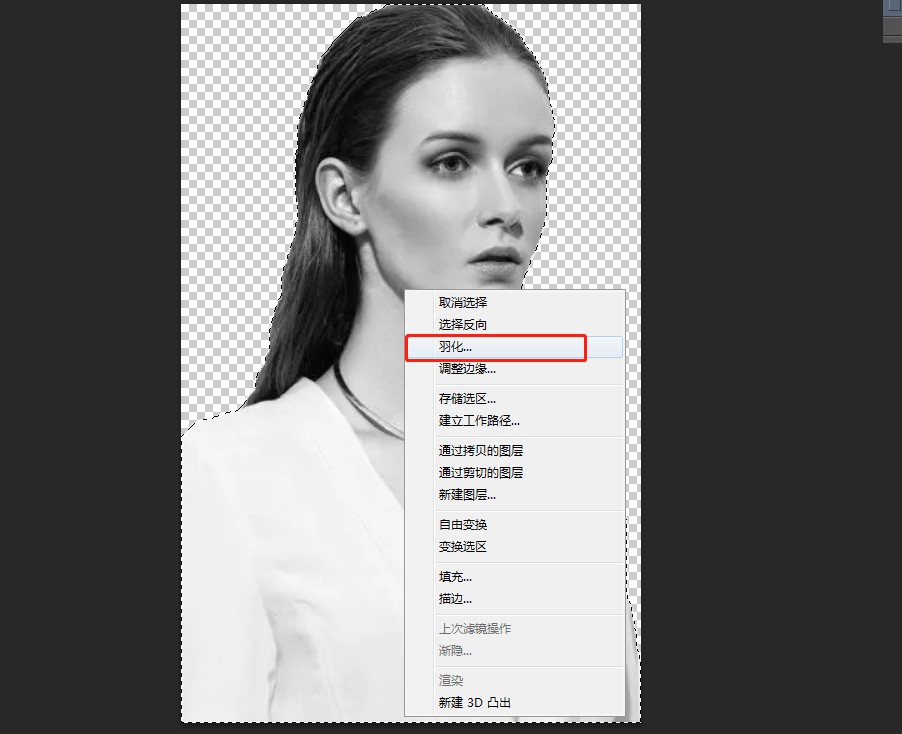 4.     點擊鼠標右鍵,選擇“羽化”命令。