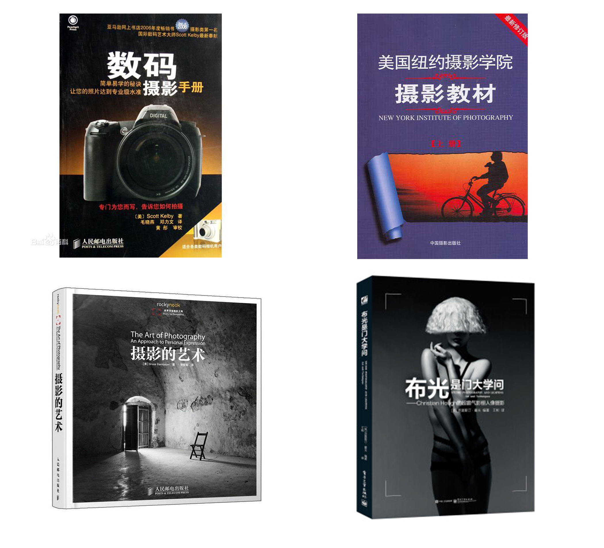 在這里給大家推薦Scott Kelby的《數(shù)碼攝影手冊》,大名鼎鼎的《紐約攝影學(xué)院教材》,Bruce Barnbaum的《攝影的藝術(shù)》和 Christian Houg的《布光是門大學(xué)問》。