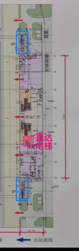 從出發(fā)的體驗(yàn)來說,兩個(gè)高鐵站都還不錯(cuò),香港的優(yōu)勢(shì)從上面這張示意圖可以看到,一共有48臺(tái)直達(dá)電梯,并且每一臺(tái)都非常寬大,輕松容納我們?nèi)蠖∷醒b備,還能裝下其他不少乘客,應(yīng)該超過無障礙設(shè)計(jì)規(guī)范中的中型電梯規(guī)格(1.60*1.40m),比醫(yī)療建筑選用的病床專用電梯還要寬,非常符合交通樞紐站,乘客攜帶大型行李以及推嬰兒車都非常的舒適寬敞。出電梯后地面指示標(biāo)識(shí)以及懸掛的指示標(biāo)牌也非常明確。