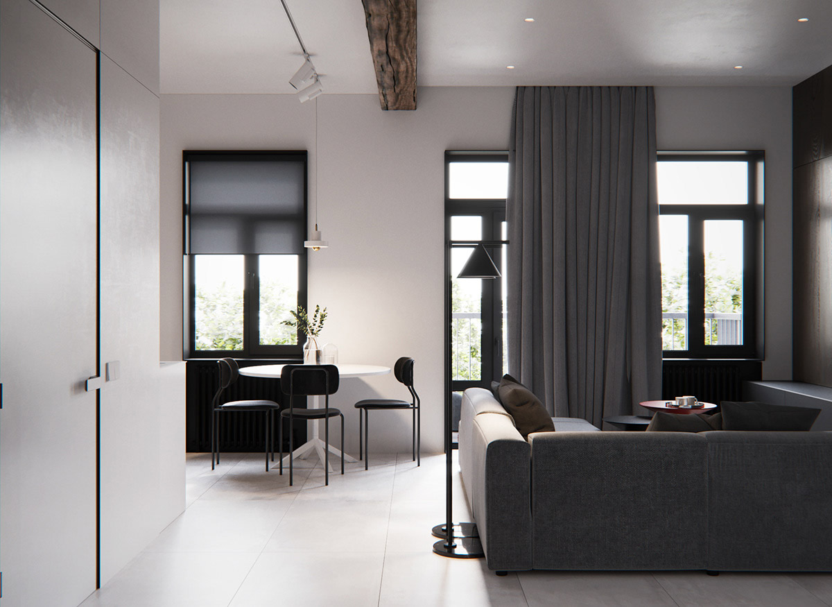 單色用餐區(qū)位于沙發(fā)后面。