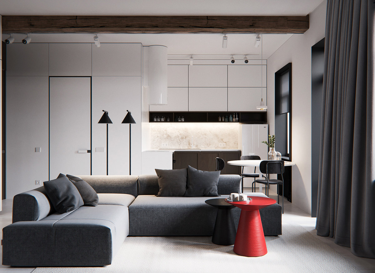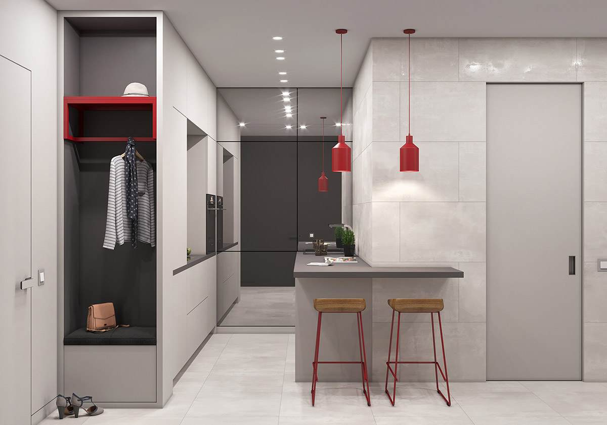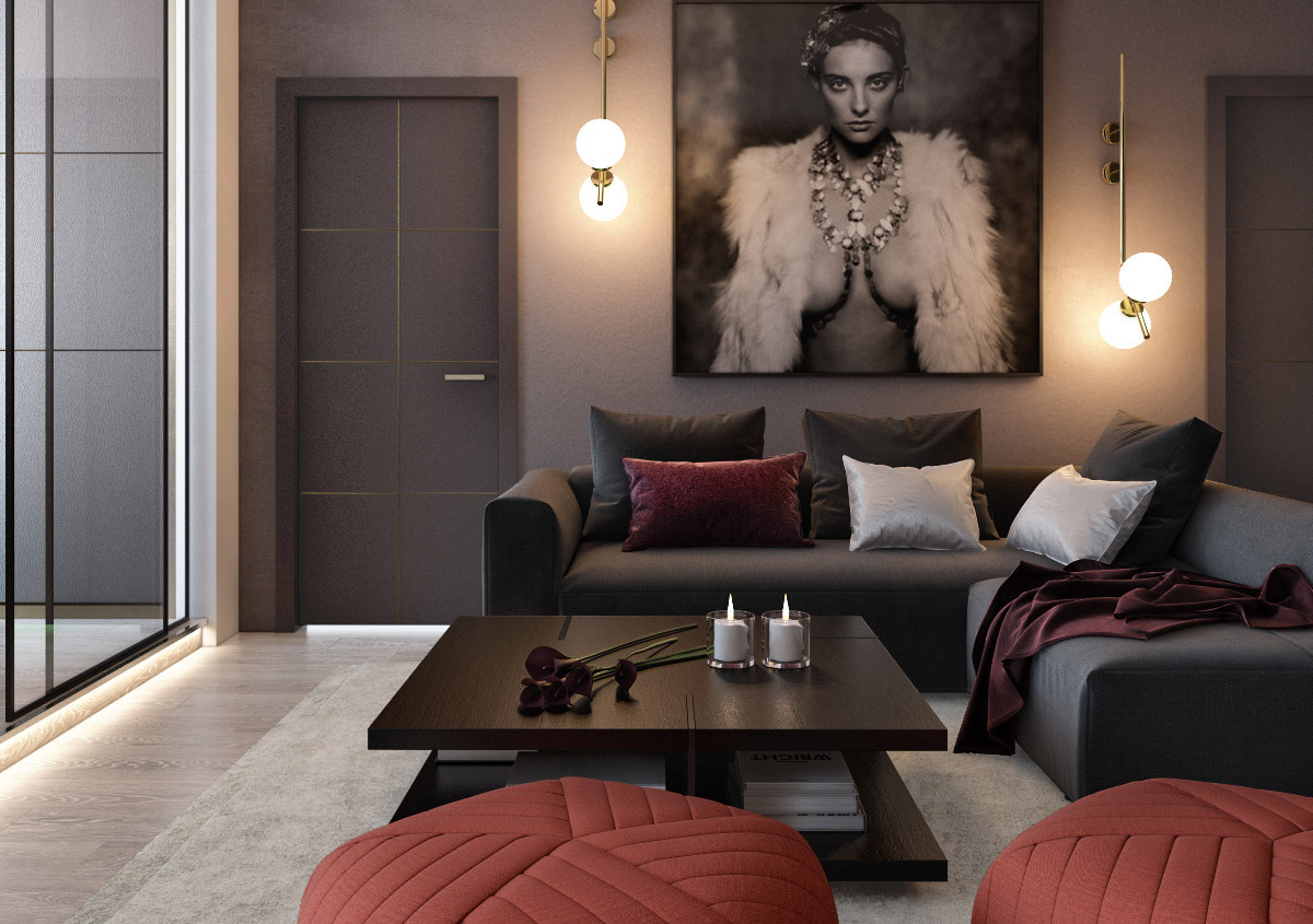 紅色是最受歡迎的顏色之一。紅色配飾抵消了灰色的酷感,并注入大膽的個(gè)性。我們要找到注入顏色的平衡點(diǎn) ,顏色太多會(huì)淹沒冷灰色背景。顏色太少,房間會(huì)顯得暗沉。