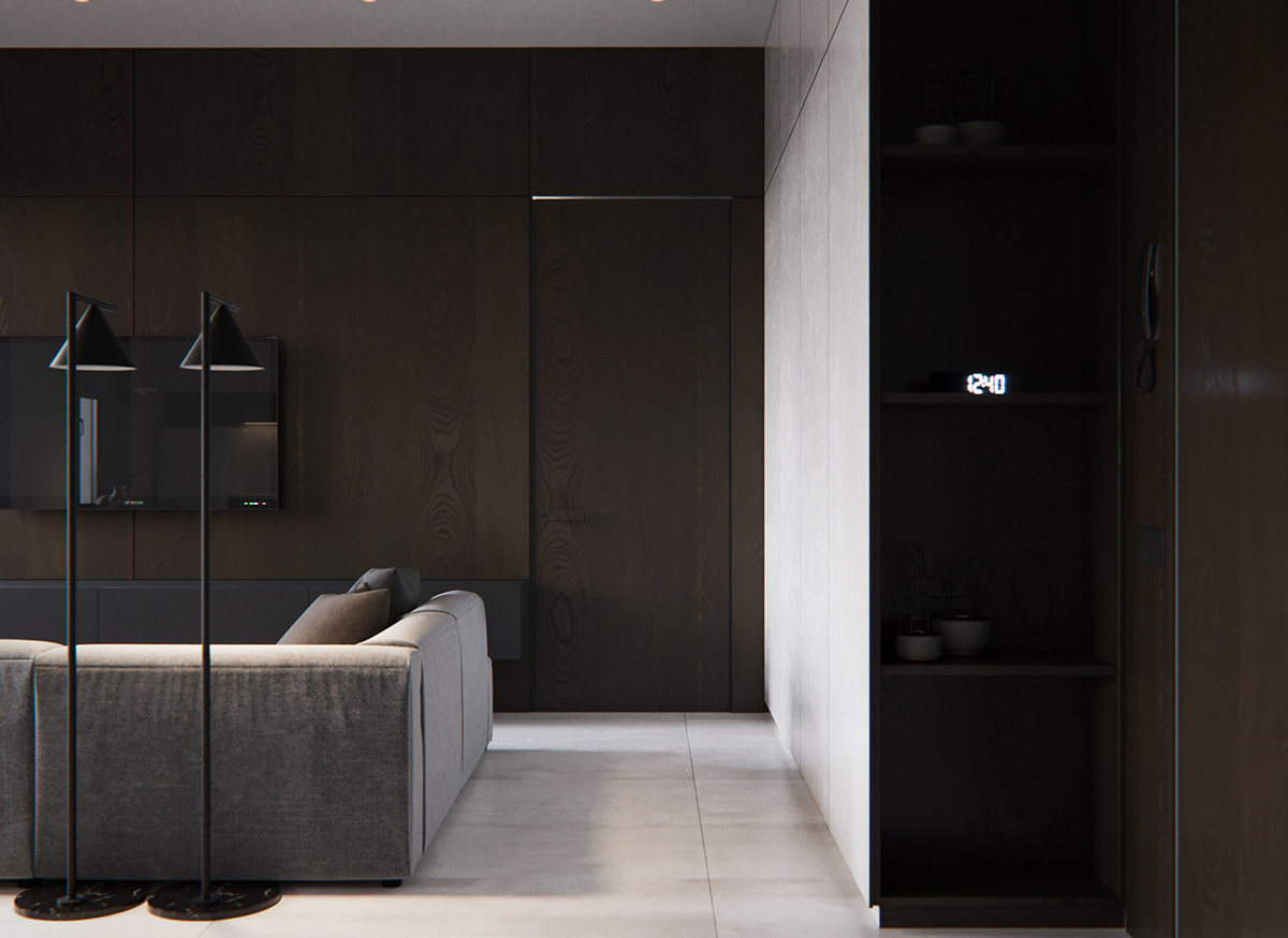 木質(zhì)效果墻的內(nèi)部有一扇門。