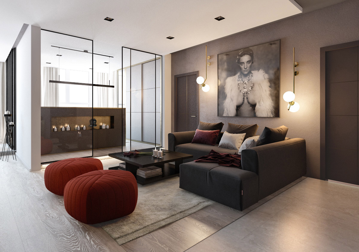 這間的現(xiàn)代化公寓有內(nèi)部玻璃墻。